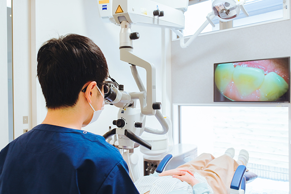 マイクロスコープ(歯科用顕微鏡)を使用して、患部を数倍〜数十倍に拡大して診ながら行う治療のことです。