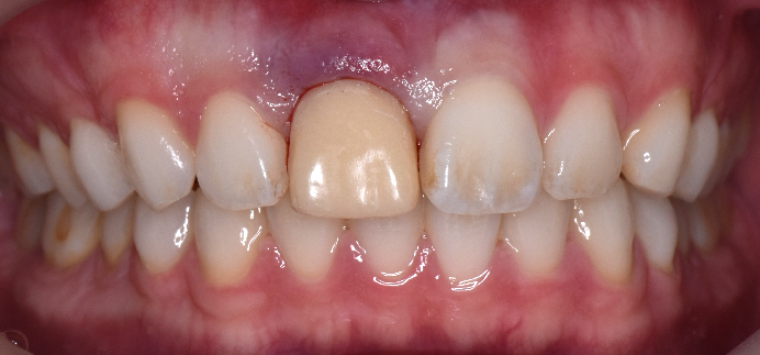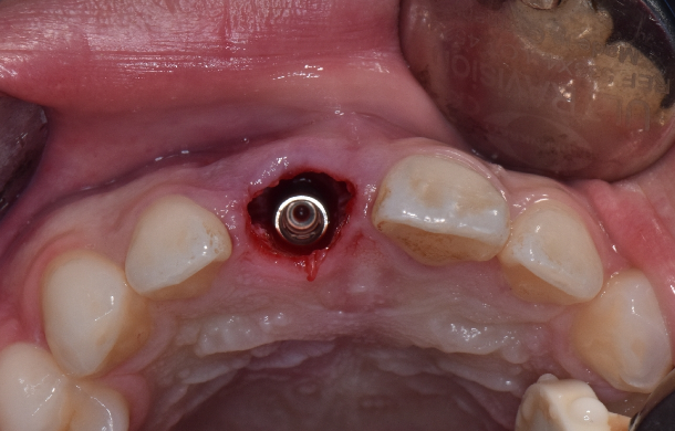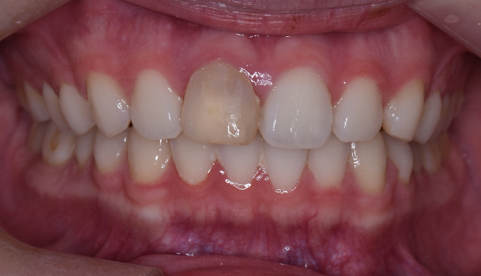 この方は、以前外傷で前歯の治療をしており、歯が根のところまで割れてしまったため保存が難しくなりました。